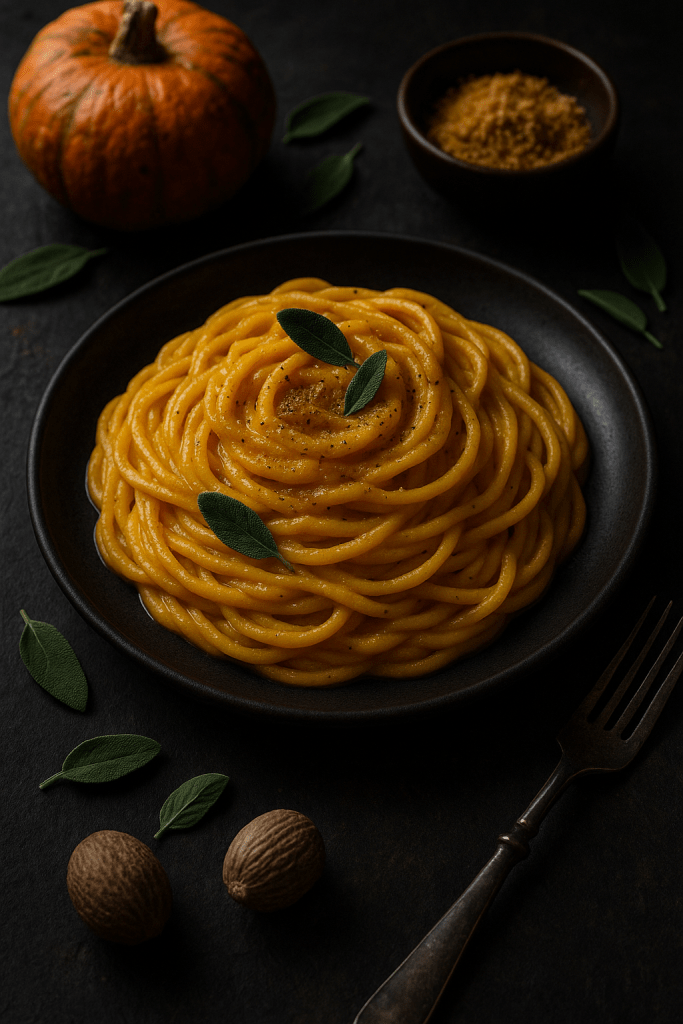 Spaghetti N.5 con crema de calabaza y nuez moscada