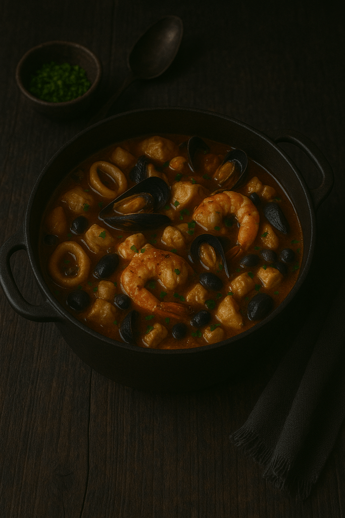 Cazuela de marisco mediterránea