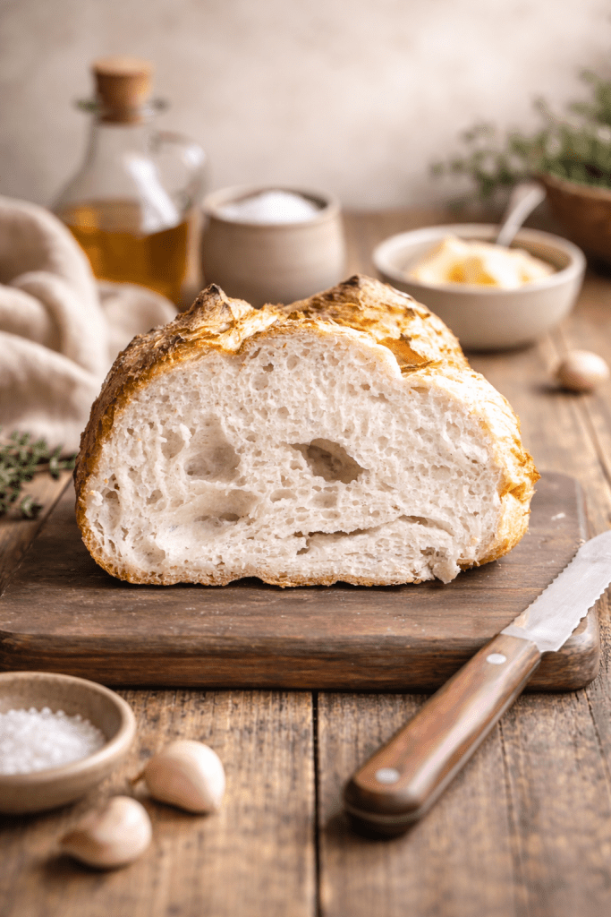 Hogaza de pan blanco sin gluten. La receta completa en nuestro futuro libro de panadería, bollería y repostería sin gluten con premezclas caseras.