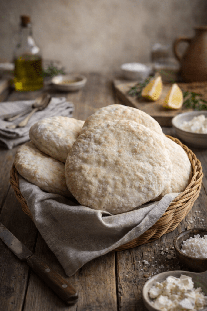 Pan árabe mediterráneo (pita) sin gluten hecho con los mixes sin gluten de Oridisicilia que encontrarás en www.oroymielsingluten.com