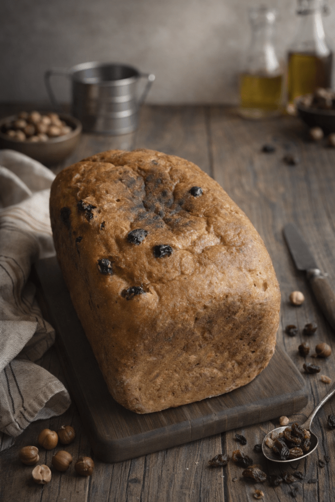 Pan sin gluten número 41 de 50: Pan de pasas y avellanas. La receta completa en mi futuro libro 50 panes sin gluten.